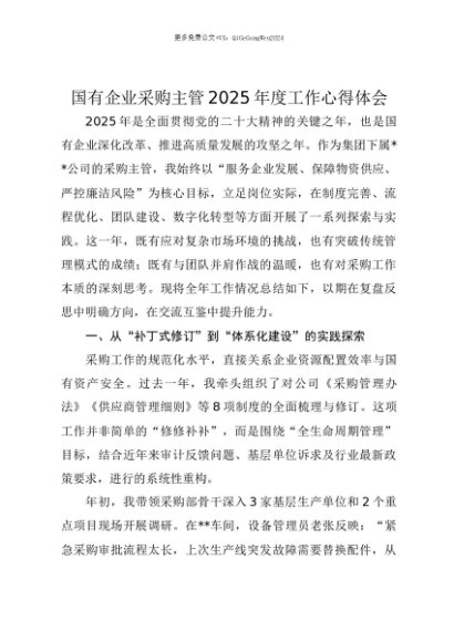 【七哥公文】2025年:【七哥公文】国有企业采购主管2025年度工作心得体会+更多免费公文+VX:QiGeGongWen2024+更多免费公文+VX:QiGeGongWen2024