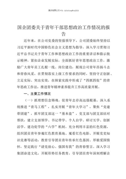 【七哥公文】2025年:【七哥公文】国企团委关于青年干部思想政治工作情况的报告+更多免费公文+VX:QiGeGongWen2024+更多免费公文+VX:QiGeGongWen2024