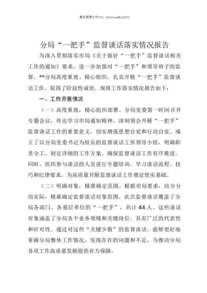 【七哥公文】2025年:【七哥公文】分局“一把手”监督谈话落实情况报告+更多免费公文+VX:QiGeGongWen2024+更多免费公文+VX:QiGeGongWen2024