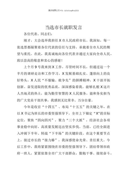 【七哥公文】2025年:【七哥公文】当选市长就职发言+更多免费公文+VX:QiGeGongWen2024+更多免费公文+VX:QiGeGongWen2024