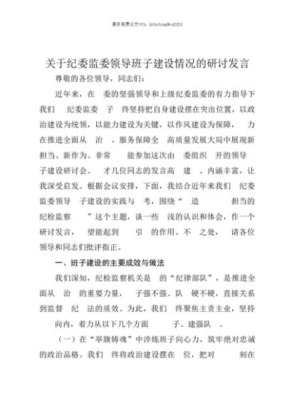 【七哥公文】2025年:【七哥公文】关于纪委监委领导班子建设情况的研讨发言+更多免费公文+VX:QiGeGongWen2024+更多免费公文+VX:QiGeGongWen2024
