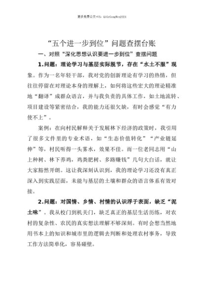 【七哥公文】2025年:【七哥公文】对照“五个进一步到位”问题查摆清单4000字(含问题、案例,精神学习教育问题参考,新增五个方面)+更多免费公文+VX:QiGeGongWen2024+更多免费公文+VX:QiGeGongWen2024