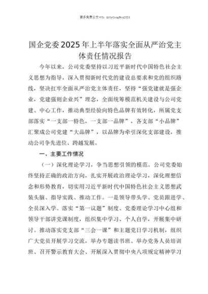 【七哥公文】2025年:【七哥公文】国企党委2025年上半年落实全面从严治党主体责任情况报告+更多免费公文+VX:QiGeGongWen2024+更多免费公文+VX:QiGeGongWen2024