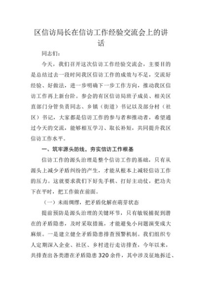 【七哥公文】2025年:【七哥公文】区信访局长在信访工作经验交流会上的讲话+更多免费公文+VX:QiGeGongWen2024+更多免费公文+VX:QiGeGongWen2024