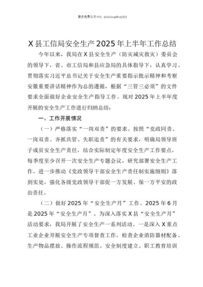 【七哥公文】2025年:【七哥公文】X县工信局安全生产2025年上半年工作总结+更多免费公文+VX:QiGeGongWen2024+更多免费公文+VX:QiGeGongWen2024