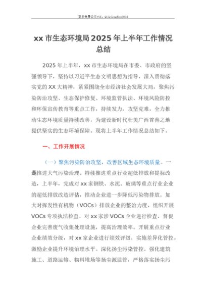 【七哥公文】2025年:【七哥公文】xx市生态环境局2025年上半年工作情况总结+更多免费公文+VX:QiGeGongWen2024+更多免费公文+VX:QiGeGongWen2024