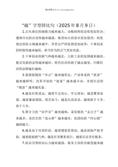 【七哥公文】2025年:【七哥公文】“越”字型排比句(2025年8月9日)+更多免费公文+VX:QiGeGongWen2024+更多免费公文+VX:QiGeGongWen2024