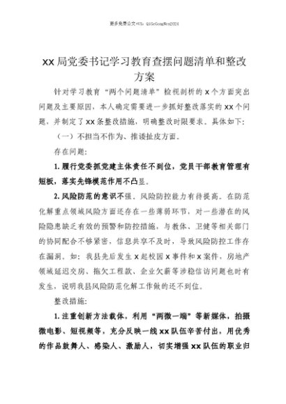【七哥公文】2025年:【七哥公文】xx局党委书记贯彻中央八项规定精神学习教育查摆问题清单和整改方案+更多免费公文+VX:QiGeGongWen2024+更多免费公文+VX:QiGeGongWen2024