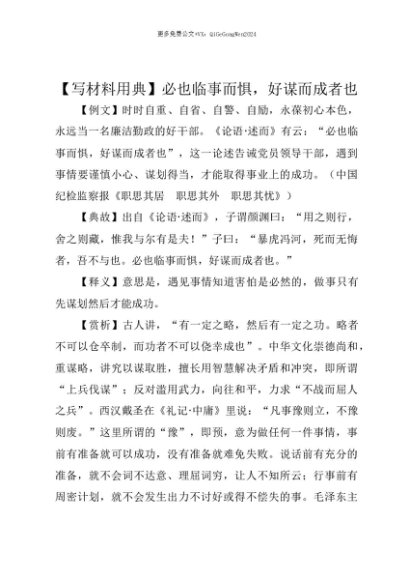 【七哥公文】2025年:【七哥公文】【写材料用典】必也临事而惧,好谋而成者也+更多免费公文+VX:QiGeGongWen2024+更多免费公文+VX:QiGeGongWen2024