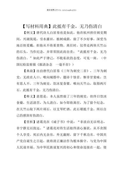 【七哥公文】2025年:【七哥公文】【写材料用典】此抵有千金,无乃伤清白+更多免费公文+VX:QiGeGongWen2024+更多免费公文+VX:QiGeGongWen2024