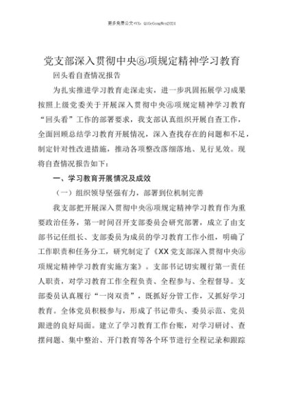 【七哥公文】2025年:【七哥公文】党支部深入贯彻中央八项规定精神学习教育”回头看“总结报告(参考范文)+更多免费公文+VX:QiGeGongWen2024+更多免费公文+VX:QiGeGongWen2024