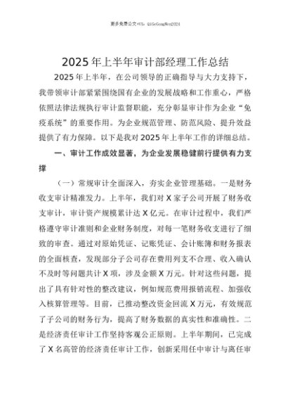【七哥公文】2025年:【七哥公文】2025年上半年审计部经理工作总结+更多免费公文+VX:QiGeGongWen2024+更多免费公文+VX:QiGeGongWen2024