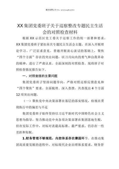 【七哥公文】2025年:【七哥公文】XX集团党委班子关于巡察整改专题民主生活会的对照检查材料+更多免费公文+VX:QiGeGongWen2024+更多免费公文+VX:QiGeGongWen2024