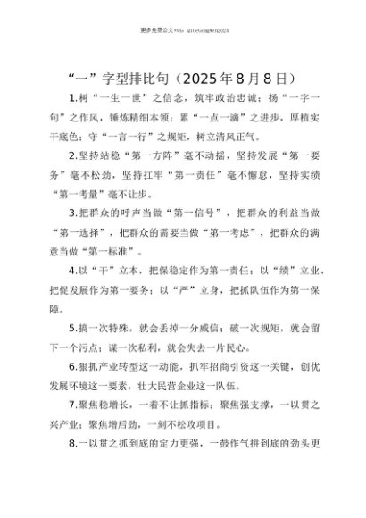 【七哥公文】2025年:【七哥公文】“一”字型排比句(2025年8月8日)+更多免费公文+VX:QiGeGongWen2024+更多免费公文+VX:QiGeGongWen2024