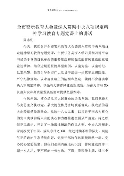 【七哥公文】2025年:【七哥公文】全市警示教育大会暨深入贯彻中央八项规定精神学习教育专题党课上的讲话+更多免费公文+VX:QiGeGongWen2024+更多免费公文+VX:QiGeGongWen2024