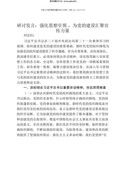 【七哥公文】2025年:【七哥公文】研讨发言:强化思想引领,为党的建设汇聚宣传力量+更多免费公文+VX:QiGeGongWen2024+更多免费公文+VX:QiGeGongWen2024