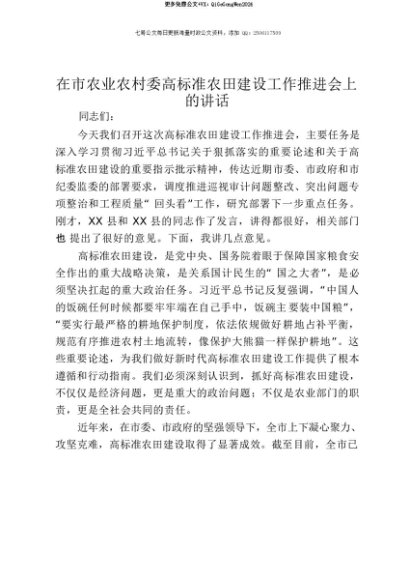 【七哥公文】2025年:【七哥公文】在市农业农村委高标准农田建设工作推进会上的讲话+更多免费公文+VX:QiGeGongWen2024+更多免费公文+VX:QiGeGongWen2024