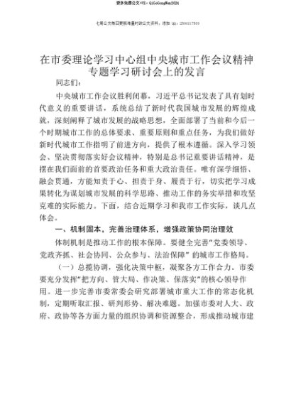 【七哥公文】2025年:【七哥公文】在市委理论学习中心组中央城市工作会议精神专题学习研讨会上的发言+更多免费公文+VX:QiGeGongWen2024+更多免费公文+VX:QiGeGongWen2024