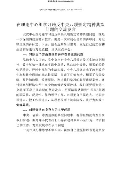 【七哥公文】2025年:【七哥公文】在理论中心组学习违反中央八项规定精神典型问题的交流发言+更多免费公文+VX:QiGeGongWen2024+更多免费公文+VX:QiGeGongWen2024