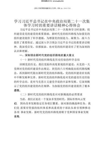 【七哥公文】2025年:【七哥公文】学习习近平总书记在中央政治局第二十一次集体学习时的重要讲话精神心得体会+更多免费公文+VX:QiGeGongWen2024+更多免费公文+VX:QiGeGongWen2024