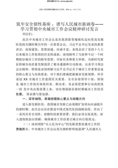 【七哥公文】2025年:【七哥公文】筑牢安全韧性基座,谱写人民城市新画卷——学习贯彻中央城市工作会议精神研讨发言+更多免费公文+VX:QiGeGongWen2024+更多免费公文+VX:QiGeGongWen2024