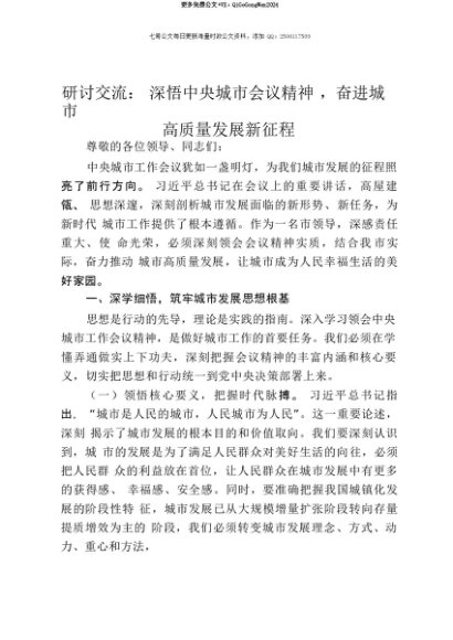 【七哥公文】2025年:【七哥公文】研讨交流发言:深悟中央城市工作会议精神,奋进城市高质量发展新征程+更多免费公文+VX:QiGeGongWen2024+更多免费公文+VX:QiGeGongWen2024
