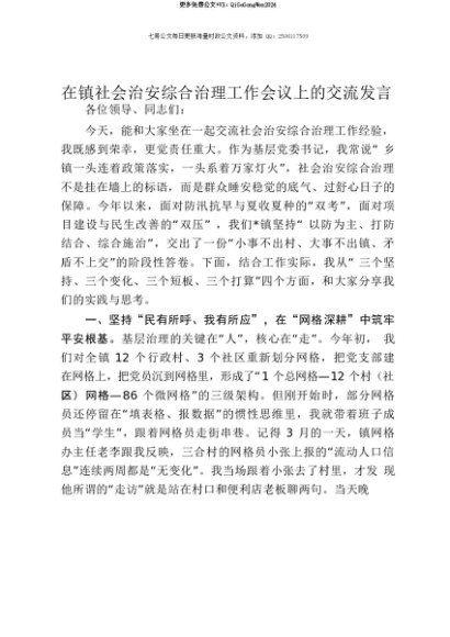 【七哥公文】2025年:【七哥公文】在镇社会治安综合治理工作会议上的交流发言+更多免费公文+VX:QiGeGongWen2024+更多免费公文+VX:QiGeGongWen2024