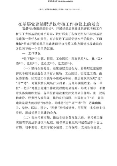 【七哥公文】2025年:【七哥公文】在基层党建述职评议考核工作会议上的发言+更多免费公文+VX:QiGeGongWen2024+更多免费公文+VX:QiGeGongWen2024