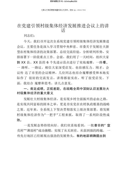 【七哥公文】2025年:【七哥公文】在党建引领村级集体经济发展推进会议上的讲话+更多免费公文+VX:QiGeGongWen2024+更多免费公文+VX:QiGeGongWen2024