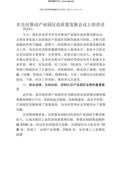 【七哥公文】2025年:【七哥公文】在全区推动产业园区高质量发展会议上的讲话+更多免费公文+VX:QiGeGongWen2024+更多免费公文+VX:QiGeGongWen2024