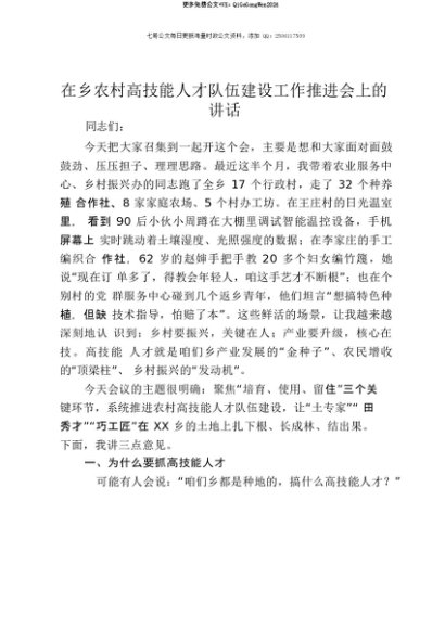 【七哥公文】2025年:【七哥公文】在乡农村高技能人才队伍建设工作推进会上的讲话+更多免费公文+VX:QiGeGongWen2024+更多免费公文+VX:QiGeGongWen2024