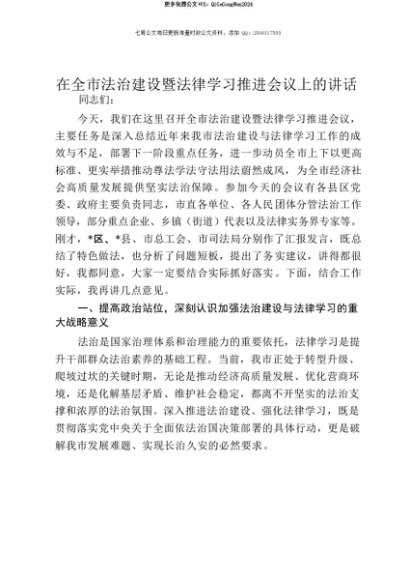 【七哥公文】2025年:【七哥公文】在全市法治建设暨法律学习推进会议上的讲话+更多免费公文+VX:QiGeGongWen2024+更多免费公文+VX:QiGeGongWen2024