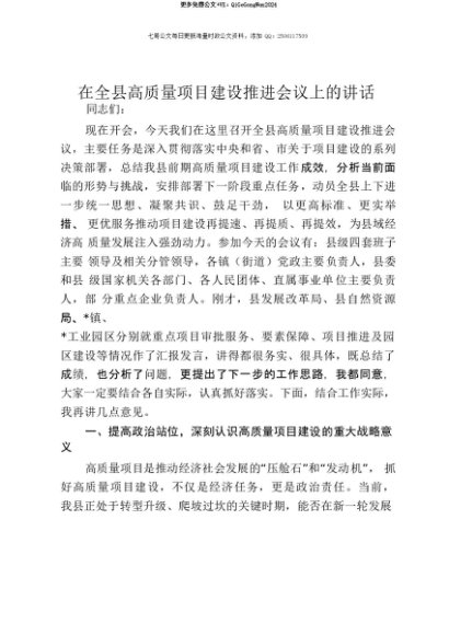 【七哥公文】2025年:【七哥公文】在全县高质量项目建设推进会议上的讲话+更多免费公文+VX:QiGeGongWen2024+更多免费公文+VX:QiGeGongWen2024