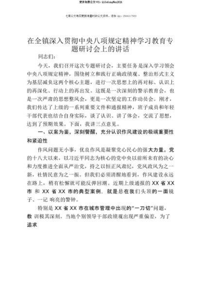 【七哥公文】2025年:【七哥公文】在全镇深入贯彻中央八项规定精神学习教育专题研讨会上的讲话+更多免费公文+VX:QiGeGongWen2024+更多免费公文+VX:QiGeGongWen2024