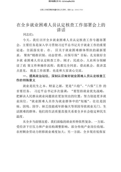 【七哥公文】2025年:【七哥公文】在全乡就业困难人员认定核查工作部署会上的讲话+更多免费公文+VX:QiGeGongWen2024+更多免费公文+VX:QiGeGongWen2024