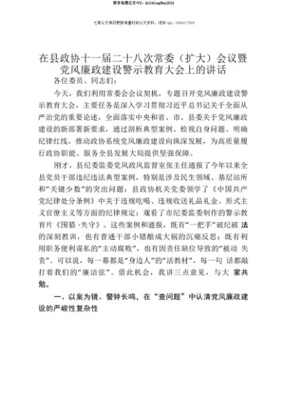 【七哥公文】2025年:【七哥公文】在县政协十一届二十八次常委(扩大)会议暨党风廉政建设警示教育大会上的讲话+更多免费公文+VX:QiGeGongWen2024+更多免费公文+VX:QiGeGongWen2024