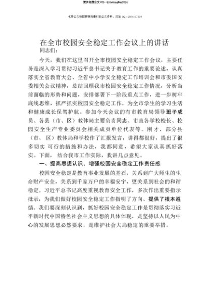 【七哥公文】2025年:【七哥公文】在全市校园安全稳定工作会议上的讲话+更多免费公文+VX:QiGeGongWen2024+更多免费公文+VX:QiGeGongWen2024