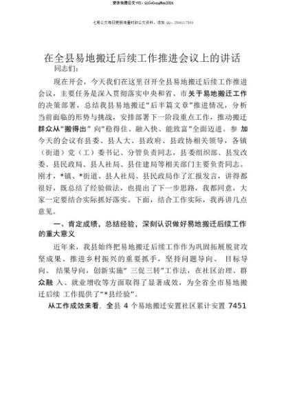 【七哥公文】2025年:【七哥公文】在全县易地搬迁后续工作推进会议上的讲话+更多免费公文+VX:QiGeGongWen2024+更多免费公文+VX:QiGeGongWen2024