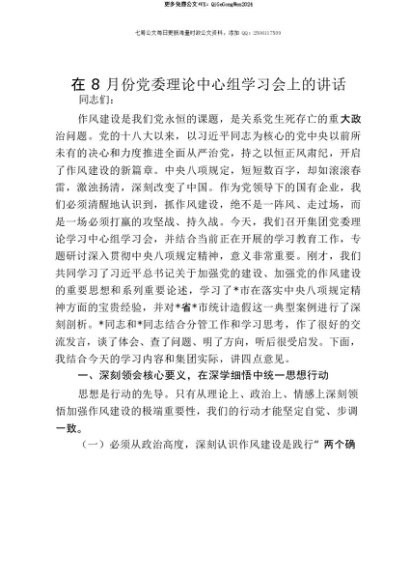 【七哥公文】2025年:【七哥公文】在8月份党委理论中心组学习会上的讲话+更多免费公文+VX:QiGeGongWen2024+更多免费公文+VX:QiGeGongWen2024