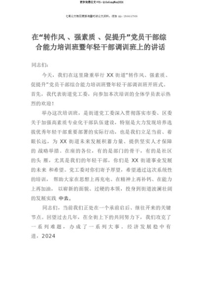 【七哥公文】2025年:【七哥公文】在“转作风、强素质、促提升”党员干部综合能力培训班暨年轻干部调训班上的讲话+更多免费公文+VX:QiGeGongWen2024+更多免费公文+VX:QiGeGongWen2024