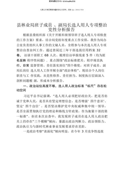 【七哥公文】2025年:【七哥公文】县林业局班子成员、副局长选人用人专项整治党性分析报告+更多免费公文+VX:QiGeGongWen2024+更多免费公文+VX:QiGeGongWen2024