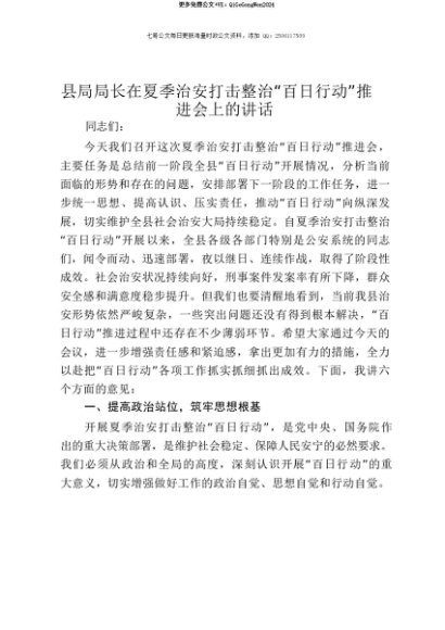【七哥公文】2025年:【七哥公文】县局局长在夏季治安打击整治“百日行动”推进会上的讲话+更多免费公文+VX:QiGeGongWen2024+更多免费公文+VX:QiGeGongWen2024