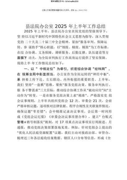 【七哥公文】2025年:【七哥公文】县法院办公室2025年上半年工作总结+更多免费公文+VX:QiGeGongWen2024+更多免费公文+VX:QiGeGongWen2024