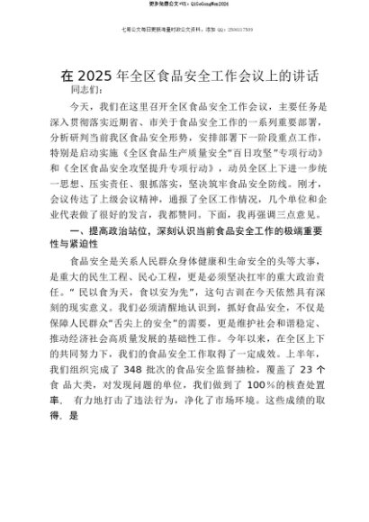 【七哥公文】2025年:【七哥公文】在2025年全区食品安全工作会议上的讲话+更多免费公文+VX:QiGeGongWen2024+更多免费公文+VX:QiGeGongWen2024
