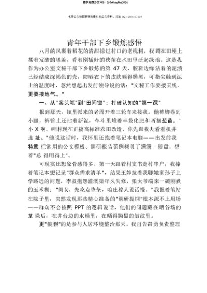 【七哥公文】2025年:【七哥公文】青年干部下乡锻炼感悟+更多免费公文+VX:QiGeGongWen2024+更多免费公文+VX:QiGeGongWen2024