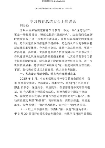 【七哥公文】2025年:【七哥公文】贯彻中央八项规定精神学习教育总结大会上的讲话+更多免费公文+VX:QiGeGongWen2024+更多免费公文+VX:QiGeGongWen2024