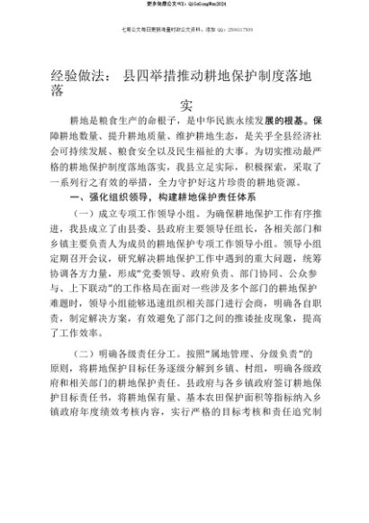 【七哥公文】2025年:【七哥公文】经验做法:县四举措推动耕地保护制度落地落实+更多免费公文+VX:QiGeGongWen2024+更多免费公文+VX:QiGeGongWen2024