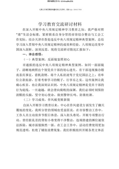 【七哥公文】2025年:【七哥公文】贯彻中央八项规定精神学习教育交流研讨发言材料(3)+更多免费公文+VX:QiGeGongWen2024+更多免费公文+VX:QiGeGongWen2024