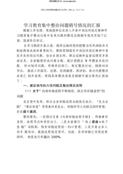 【七哥公文】2025年:【七哥公文】贯彻中央八项规定精神学习教育集中整治问题销号情况的汇报+更多免费公文+VX:QiGeGongWen2024+更多免费公文+VX:QiGeGongWen2024
