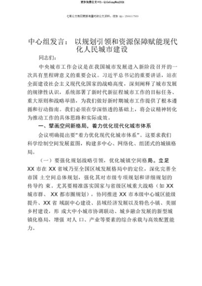 【七哥公文】2025年:【七哥公文】中心组发言:以规划引领和资源保障赋能现代化人民城市建设+更多免费公文+VX:QiGeGongWen2024+更多免费公文+VX:QiGeGongWen2024